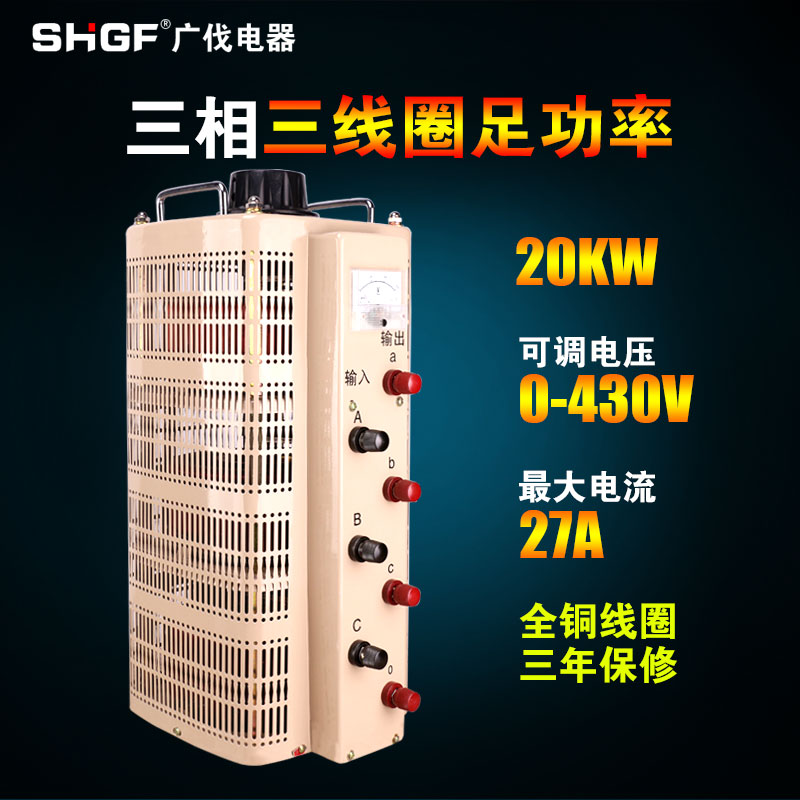 Wide-vaxling three-phase voltage regulator 20kw adjustable 0v-430v AC power lifting transformer TSGC2-20KVA
