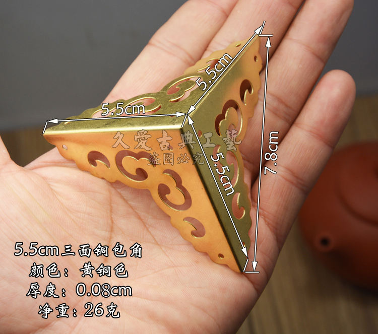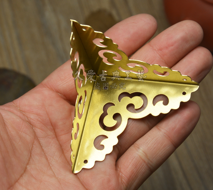 Chinese Imitation Antique Furniture copper accessories pure copper wrapping corner guard angle wrapping with three sides Zhangmu box corner flower Xiangyun hollowed-out corner code