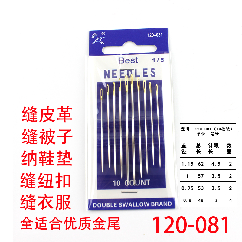 9 9 Yuan Double Swallow Gold Tail Fine Fit Hand-stitched Stitch Sewing Large Eyewear Needle Outlet Type Sewing Leather Needle
