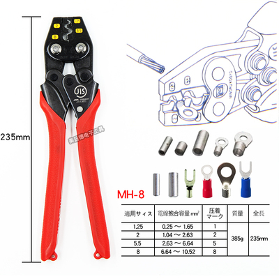 Japan Maobao press pliers MH-5 5S 8 14 14 22 38 38 press wire pliers terminal pliers nude terminal cold press pliers