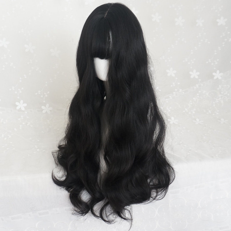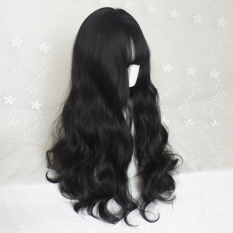 Wig woman long curls Korean air bangs round face big wave black simulation big scalp realistic natural top