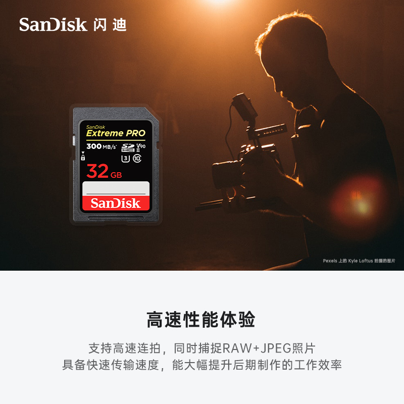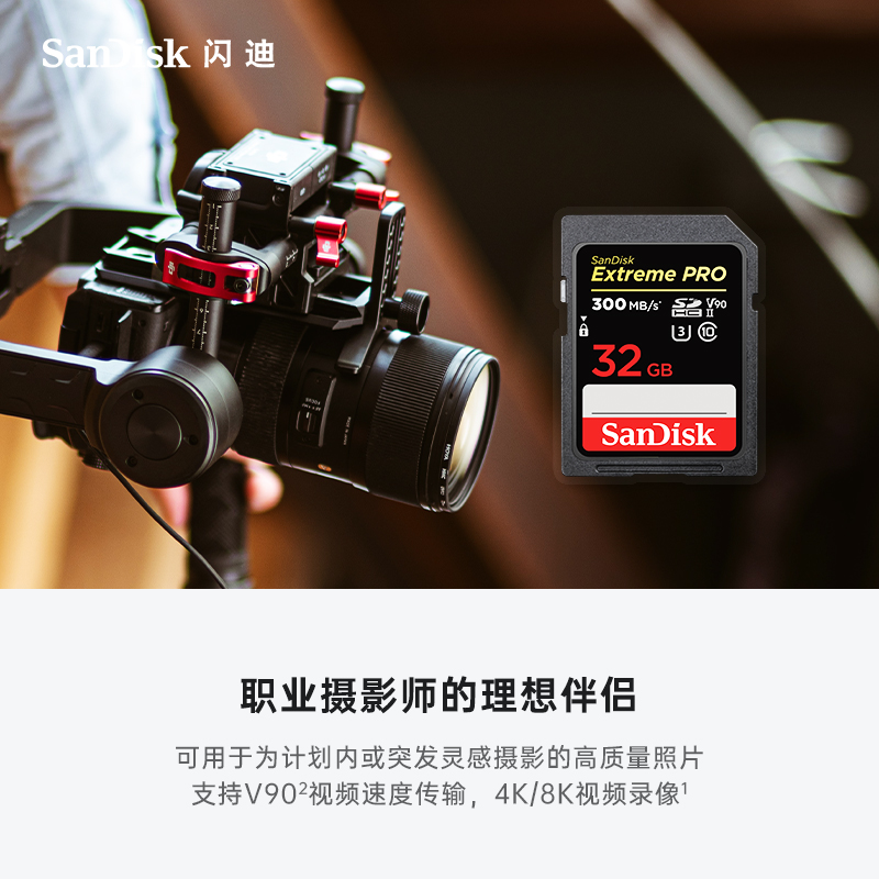 SanDisk SD card 32G UHS-II camera memory card 300MB s 4K8K HD shooting memory card V90