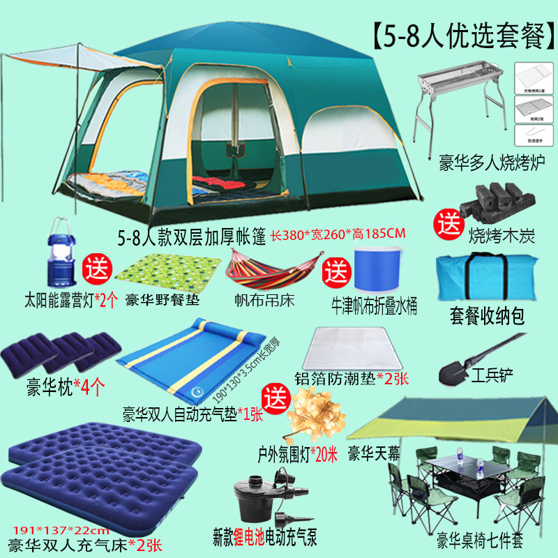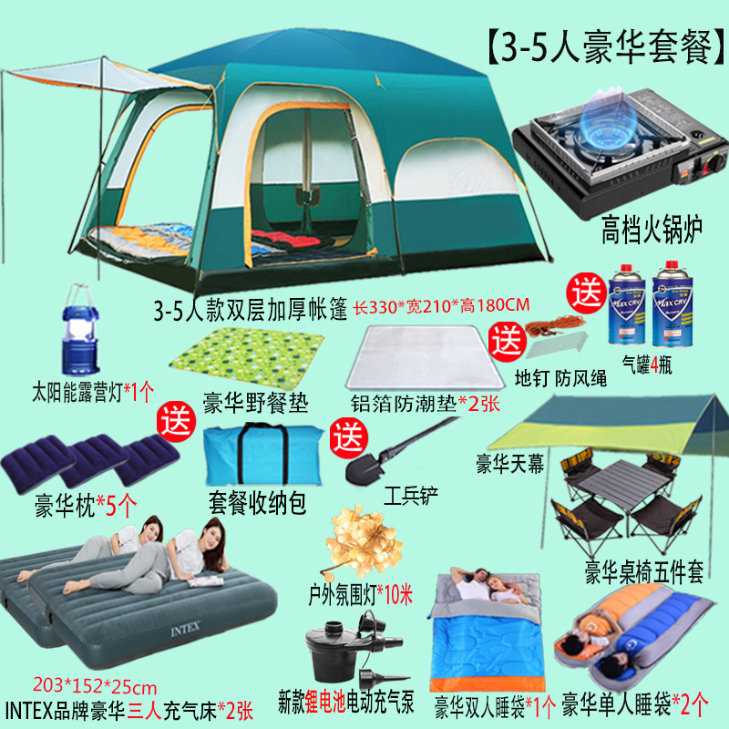 Big tent outdoor camping thickened field camping two rooms and one hall luxury villa rainproof portable full set of equipment