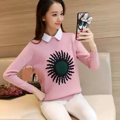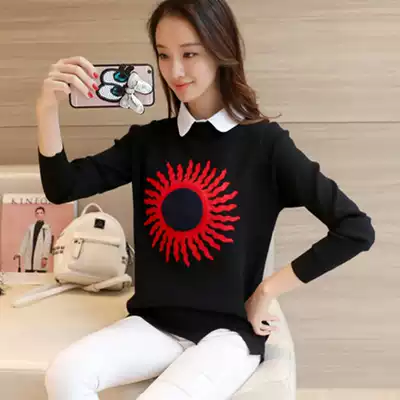 Autumn 2021 new fake two-piece tops women's sweaters long-sleeved loose velvet base sweater jacket spring
