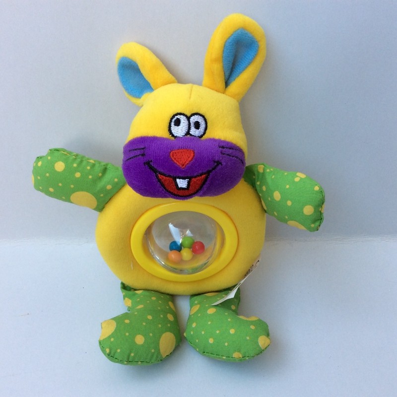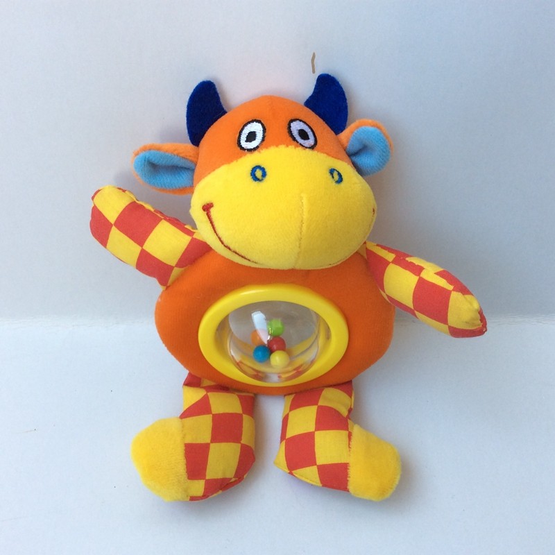 Full 68 baby playing with a small bull hand rocking the bell and exercising little hand gripping the baby puzzle doll 1 year old