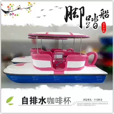 Fiberglass 4-person coffee couple pedal boat pleasure boat Park pedal boat self-draining pedal park cruise boat