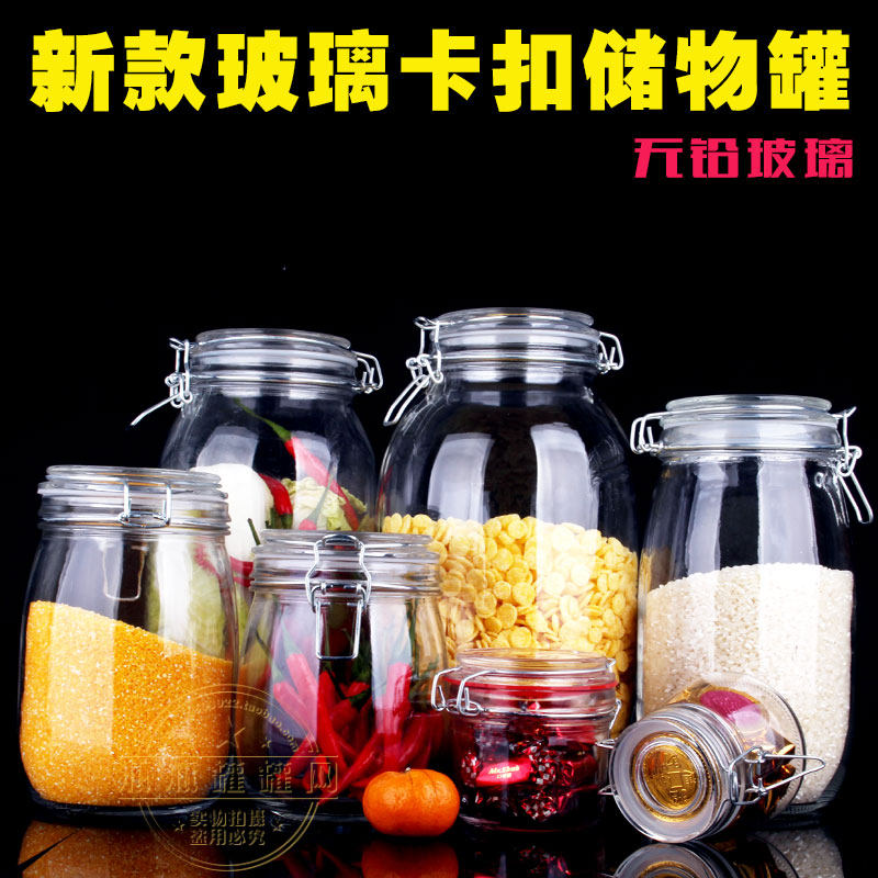 Glass container sealed bottle kitchen glass bottle with large food storage cans cushion glass sealing tank