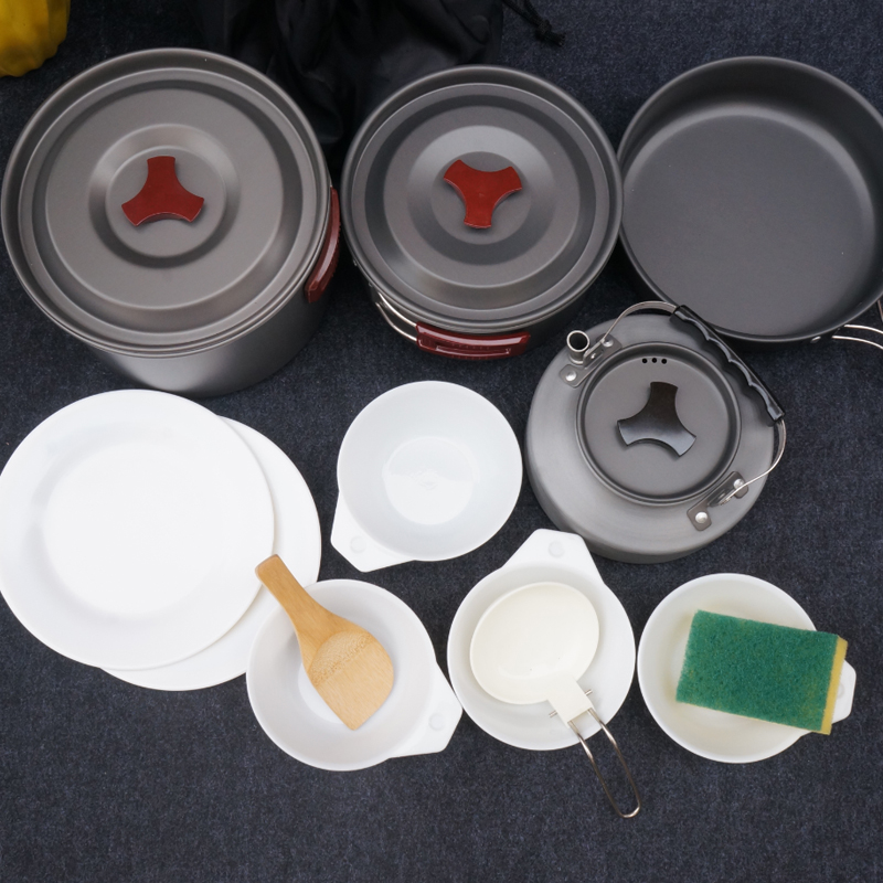 Hot outdoor cooking pot single set pot Outdoor tableware Camping Camping cooking pot portable set
