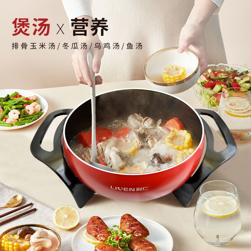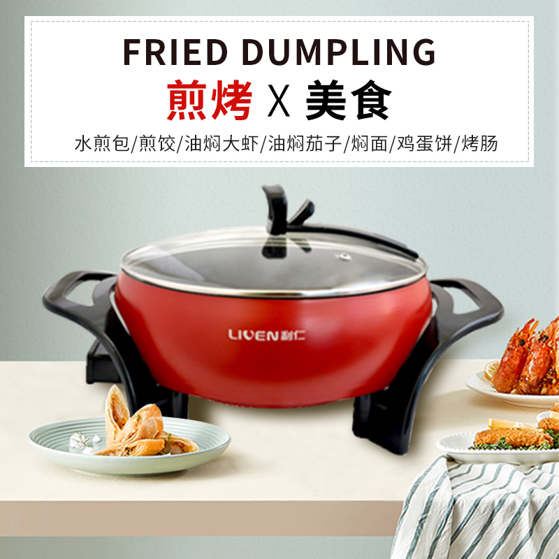 Lillen Electric Pot Cooker Pot Household large capacity electric frying pan small electric cooker dorm scramble 260A