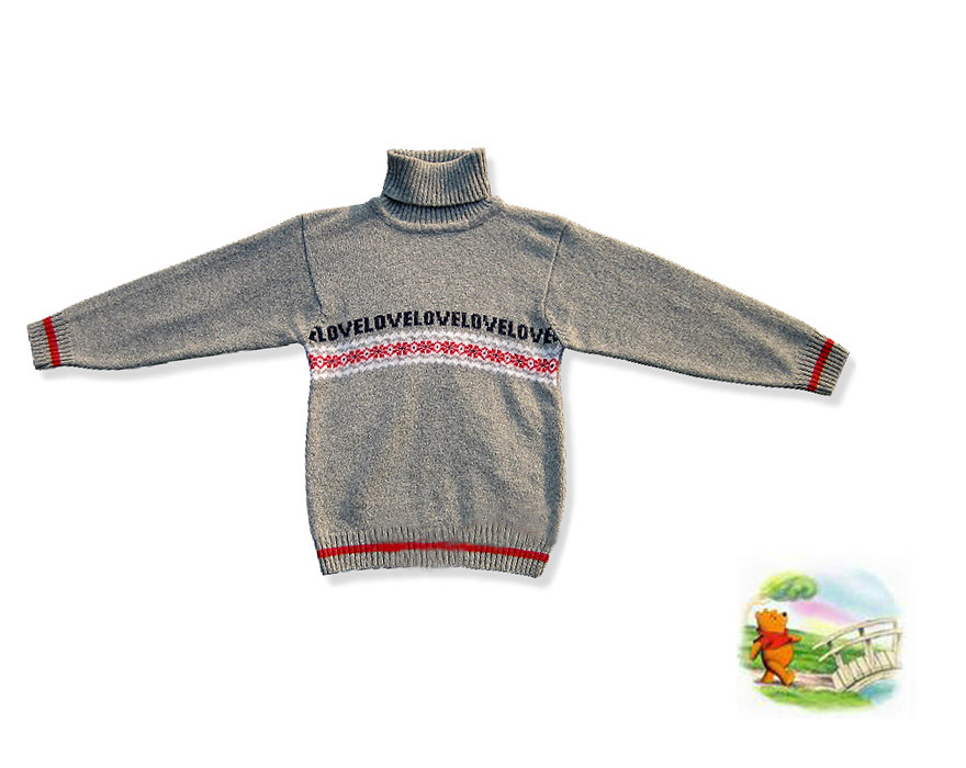 Winter children jacquard wool sweatshirt with two turtlenecks full fur coat high collar warm knit sweatshirt for boys and men