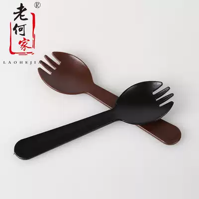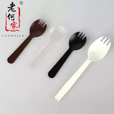 Lao he family disposable plastic fork spoon independent packaging fruit fishing spoon ice cream cake dessert fork spoon 100