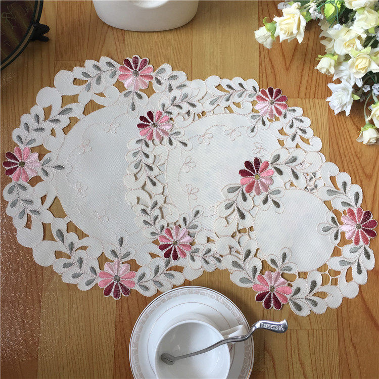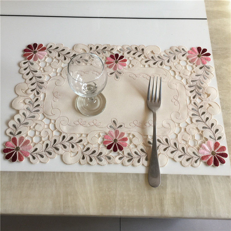 Factory direct selling European pastoral style high-end computer embroidery simple hollow tablecloth table flag dish pad coaster
