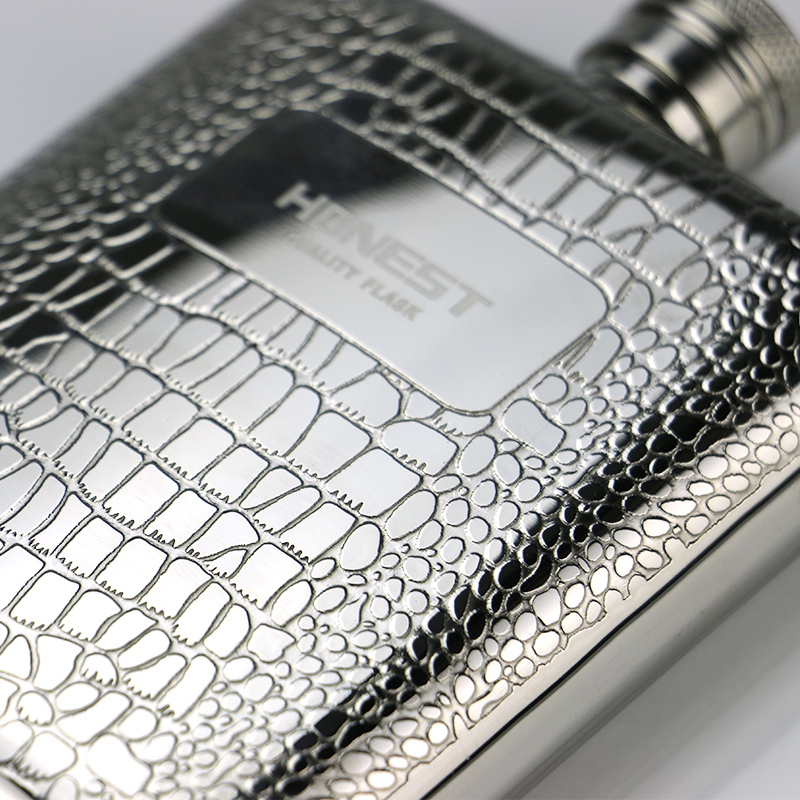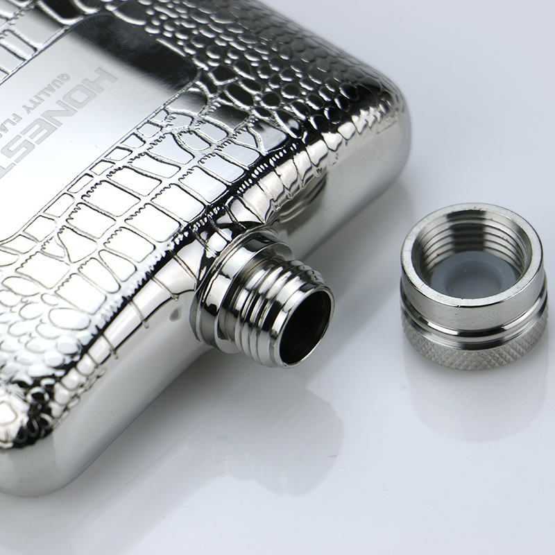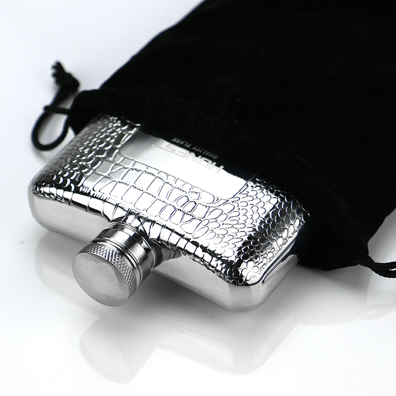 Export Russia 304 stainless steel 6 oz Thickened Wine Jug Crocodile Print Outdoor portable with wine jug
