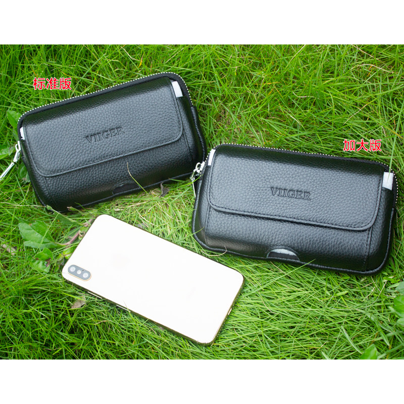 Genuine leather mobile phone pocket male wearing leather strap horizontal Bull Leather Multifunction suitable for Huawei Apple 5 5 6 5 5 inches