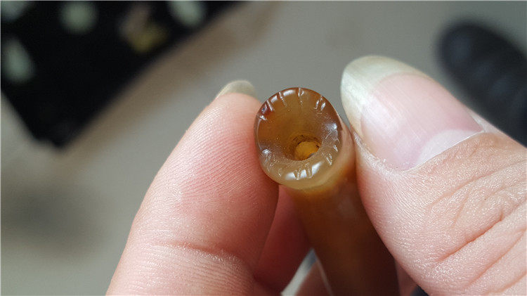 Liao Dynasty old agate double faucet accessories 45mm long middle hole with three-way function bag old wear collection necklace