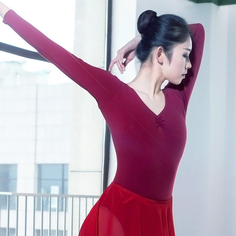 Autumn Winter Long Sleeve Rear Cross Ballet body clothes Adult ballet Gymnastics Suit Women Artistic Gymnastics Suit Dance Suit