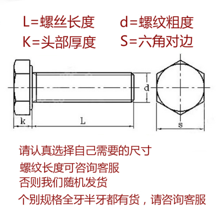 12 9 grade external hexagon screw m16 * 30-m16*290 lengthened high strength external hexagon head bolt din931 933