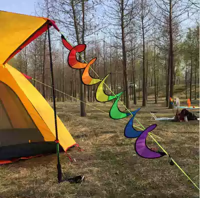 Outdoor camping rainbow rotating colorful wind strip camping dynamic Christmas flag decoration hair dryer super long windmill supplies