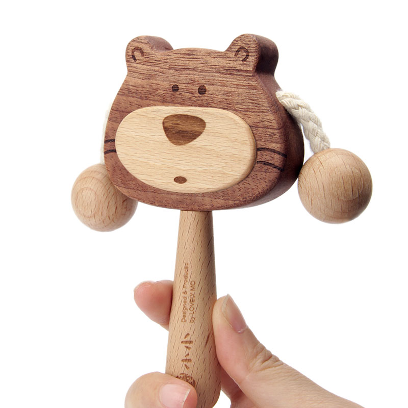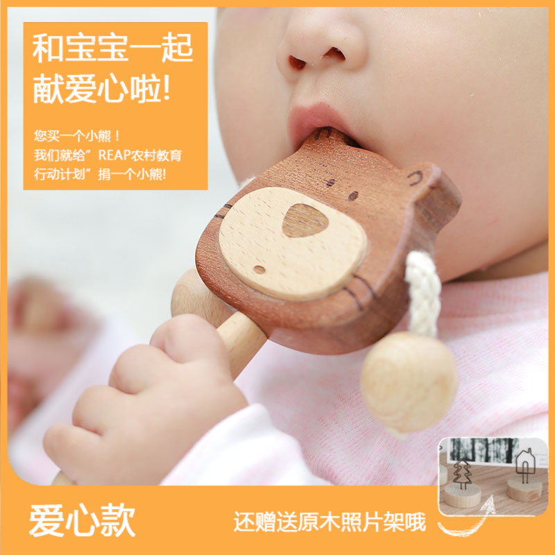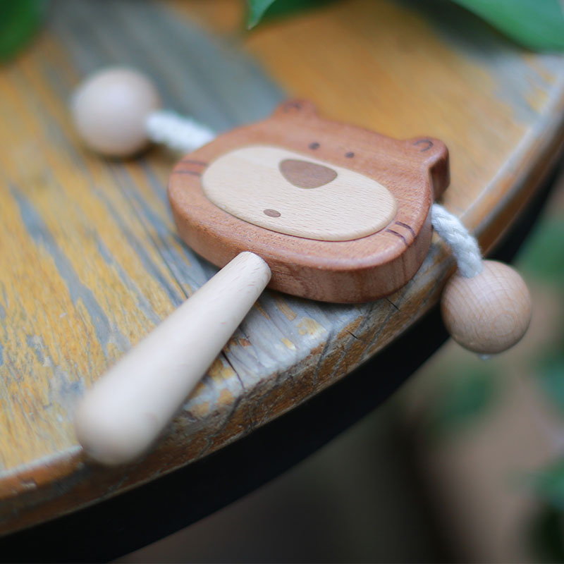 Ink little wooden rattle baby can bite newborn baby 6 months old wooden bear wave drum toy