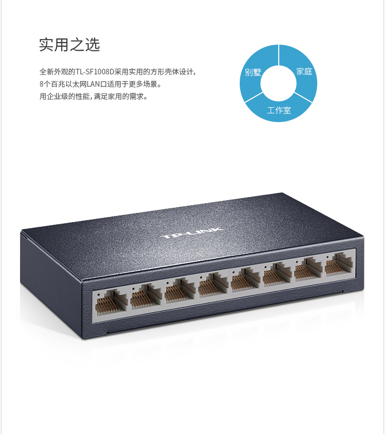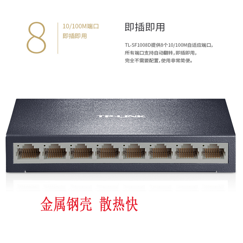 TP-LINKTL-SF1008D 8-mouth 100 trillion Steel shell Switch Broadband Network Road Switcher Extension of Line Internet Hub to Seven Out of Plug and Play