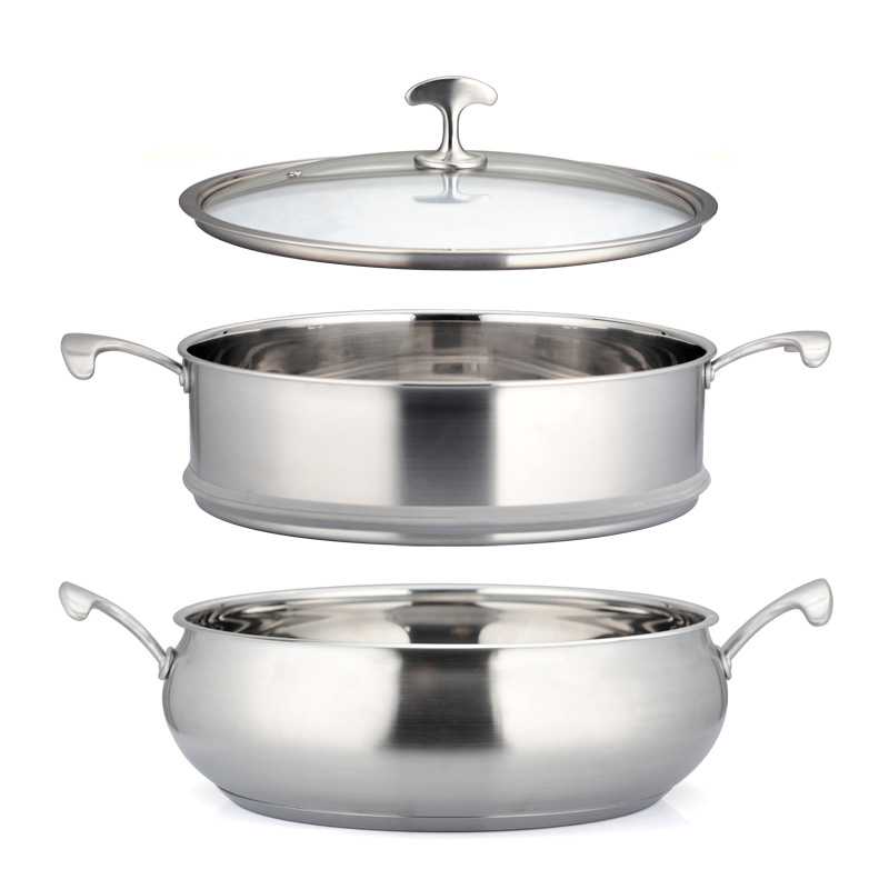 Smooth Hair Steaming Pan Fu Shares 30cm Eu Style Soup Pot Double Steam Pot Hot Pot 304 Stainless Steel Induction Cookware Universal