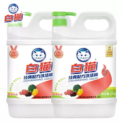 White cat classic Formula detergent 2kg * 2 bottles easy to remove oil washable fruit and vegetable detergent dishwashing liquid lemon fragrance