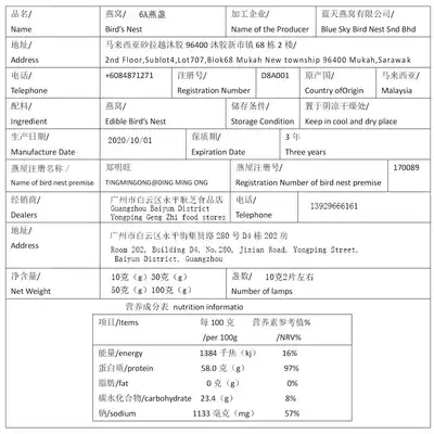 Bird's nest dry cup pregnant women Malaysia Indonesia non-instant 6A gold silk white swallow 100g gift box
