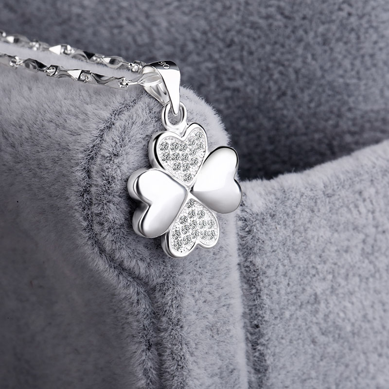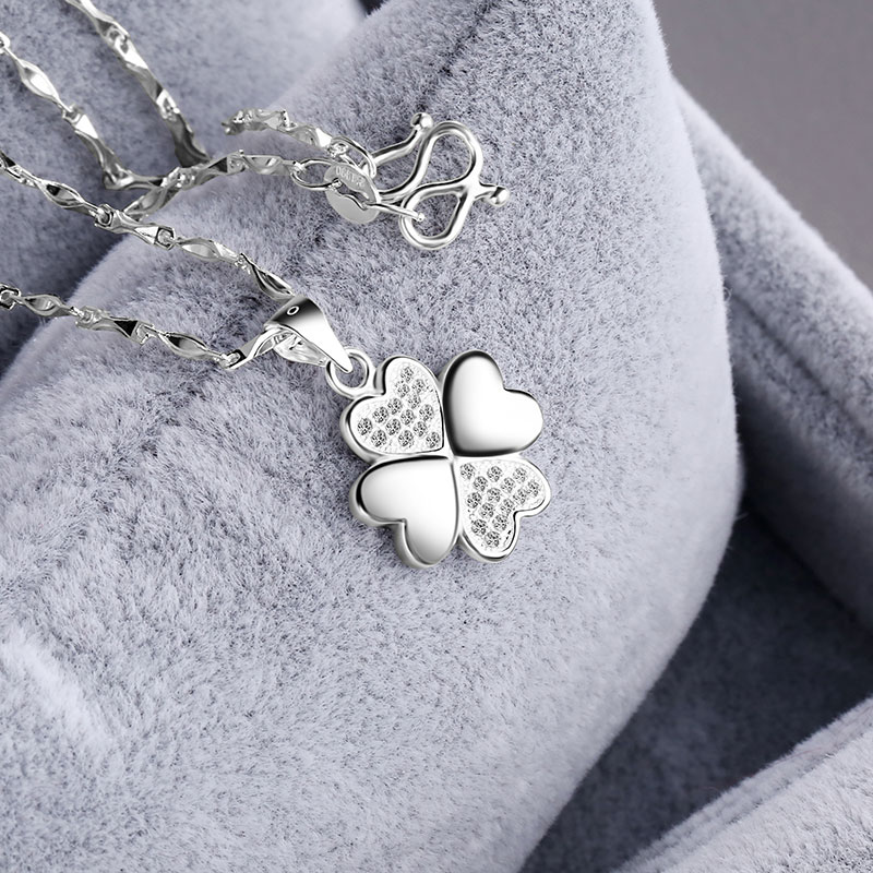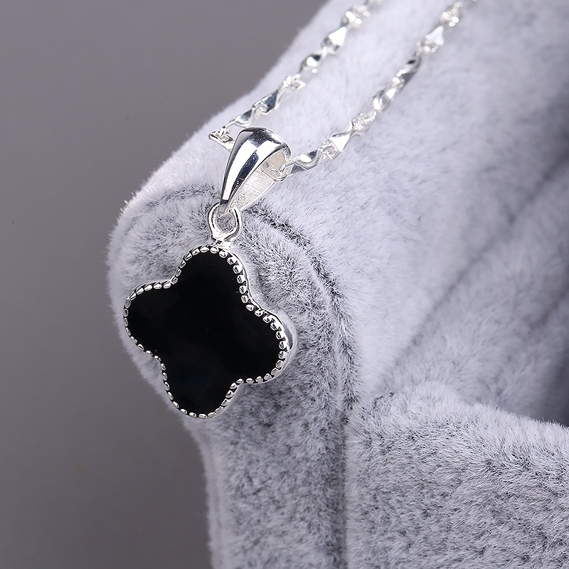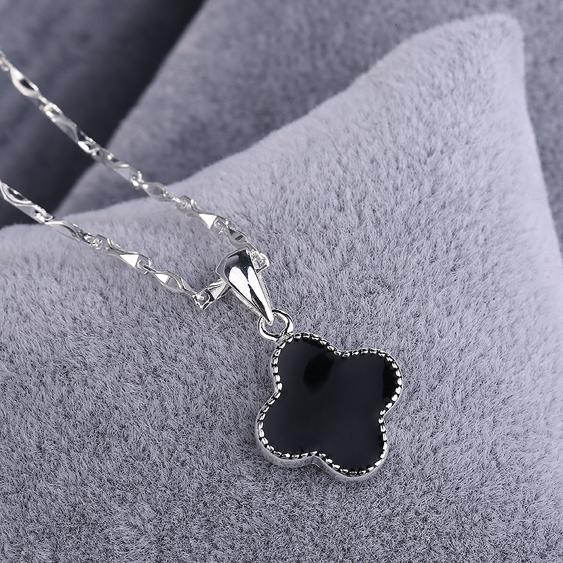 Love Four Leaves Grass Pure Silver S990 Silver Necklace Collarbone Korean Version White Foot Silver Pendant Girl Gift Free Lettering