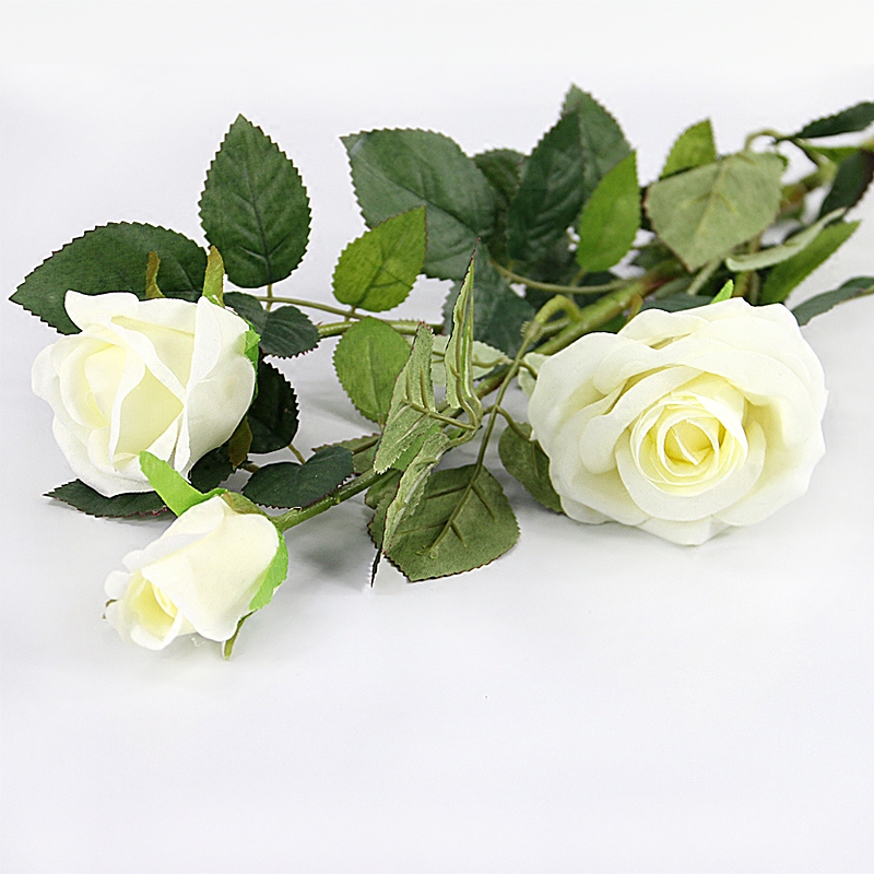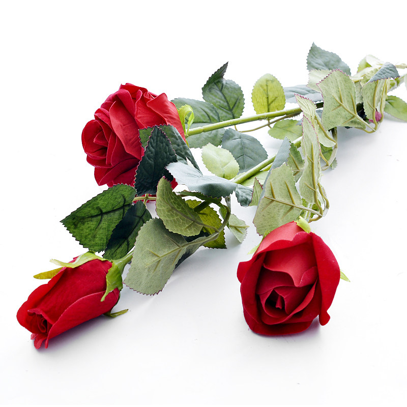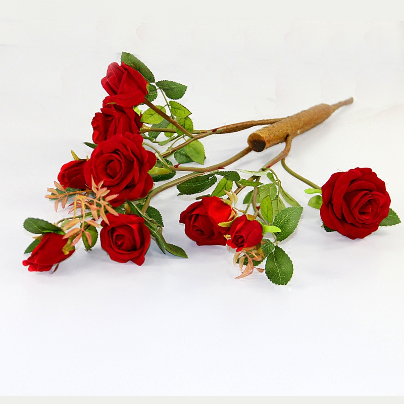High-grade simulation rose flannel feel fake flower 3 roses living room coffee table floor-to-ceiling decorative bouquet