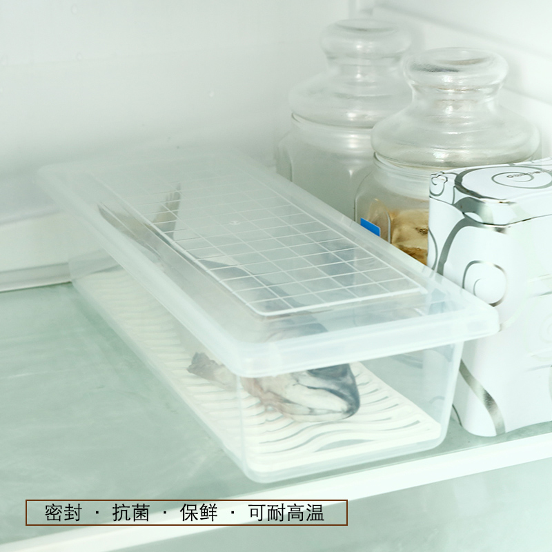 Plastic rectangular refreshing box sealed box fish box hanging surface box fruit and vegetable preservation box sub-fridge food containing box