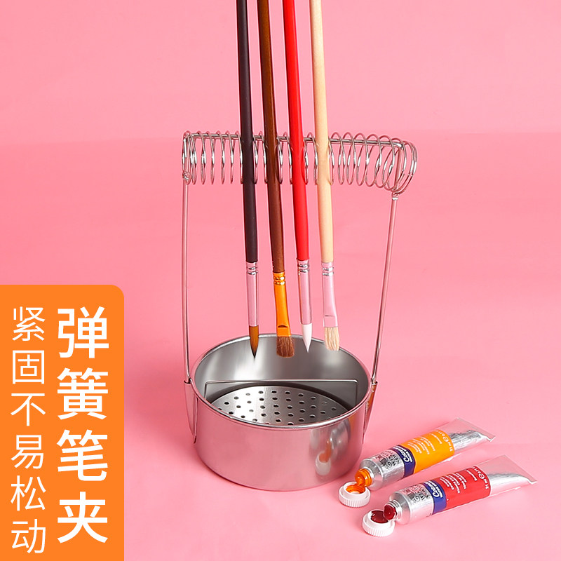 Boglino Handheld Stainless Steel Single-Hole Oil Pot Oil Painting Oil Color Ink Painting Toning Ware Can Hang With Lid Tightness Good Tightness Proof Oil Leak Wash Pen Pot Golden Wash Pen Barrel Silo Turpentine Wash Pen