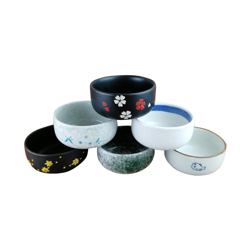 2 packs of Japanese-style small rice bowl soup bowl dining room ribbed bowl rice bowl hand-painted ceramic bowl home eating bowl