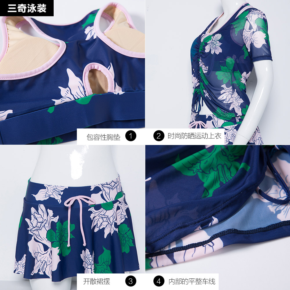 Sanqi Bikini Three-Piece Women's Small Chest Gathering Sexy Seaside Blouse Skinny Conservative Bikini Hot Spring Swimsuit
