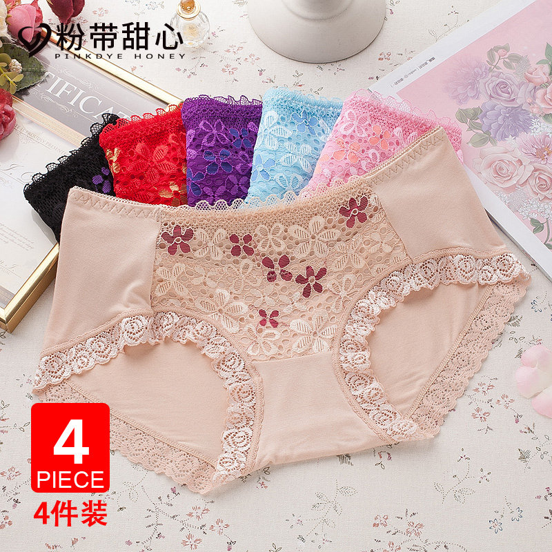 Panties Ms Modale lace side fabric transparent low mid waist red Sexy temptation No marks Triangle safety trouser head