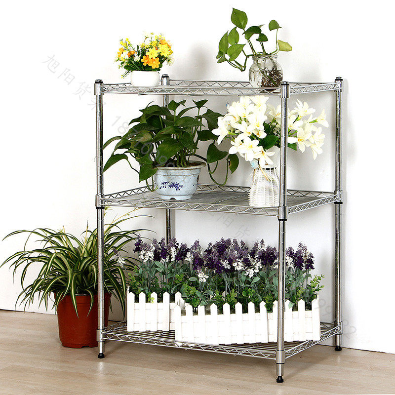 Kitchen Shelve 3-Floor Microwave Rack Stainless Steel Color Multilayer Containing Finishing Pan Rack Vegetable Rack Balcony Flower Shelf