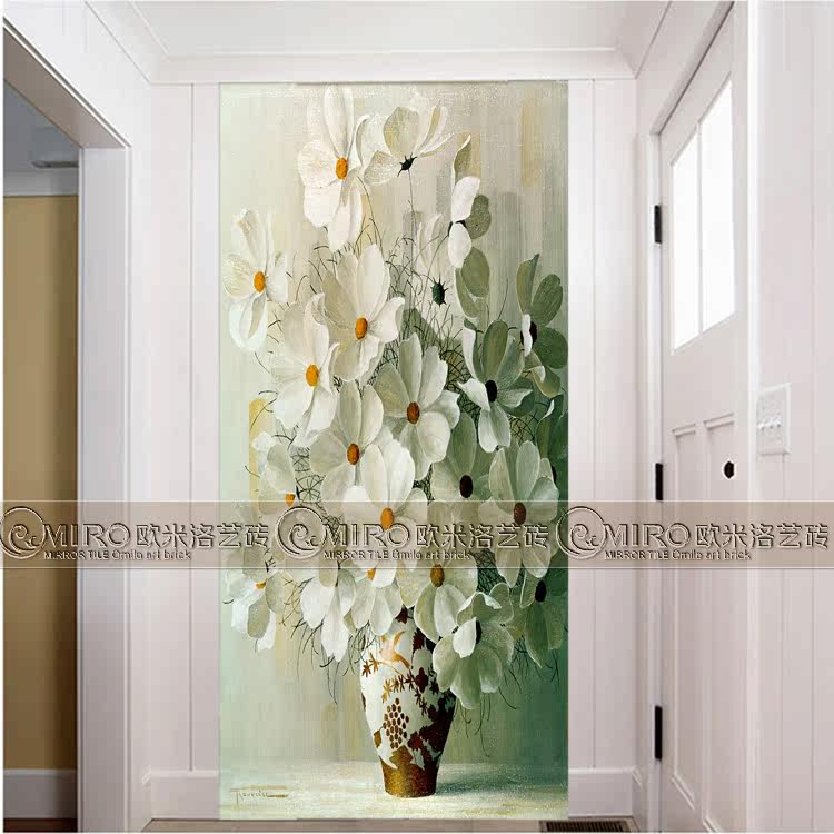 New Crafts Custom Art Glass Partition Screen Background Wall Moving Doors Xuanguan Color Painted Steel Decoration Jade Orchid Bottle