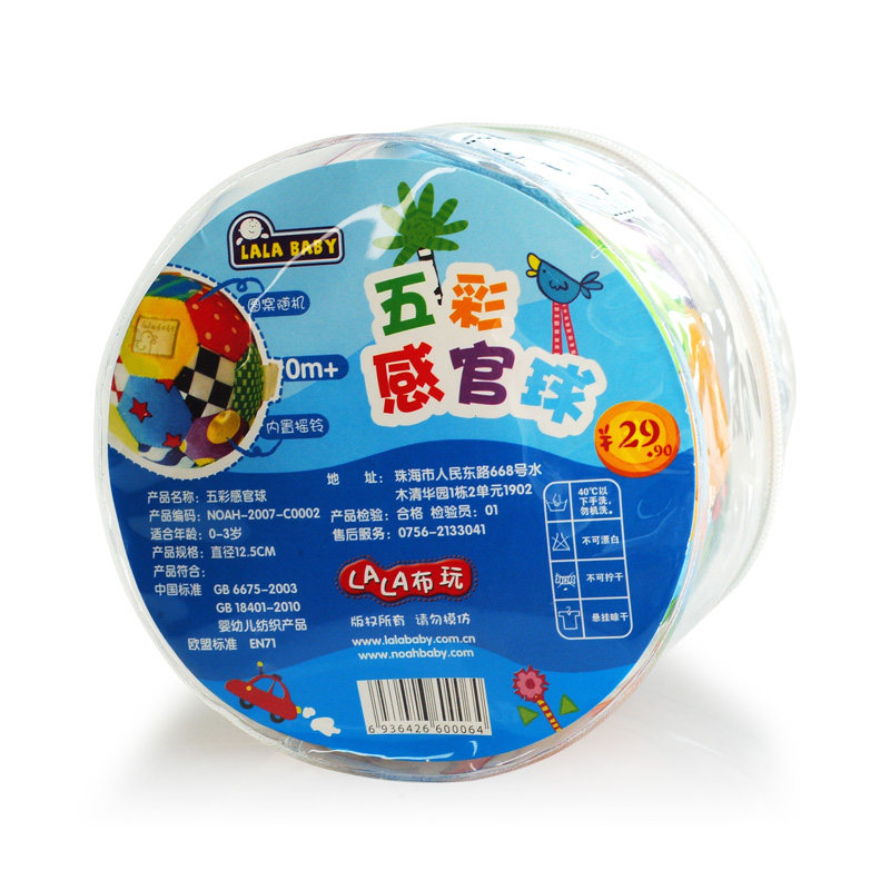 Lalabu book hands catch ball baby early to teach 0-3-year-old gripping toy rattle baby bell-ball five colored boob ball