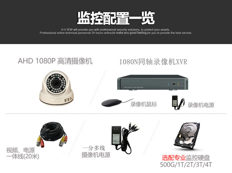Monitoring equipment set 2 4 6-way AHD2 million coaxial high-quality camera head full set of home monitor 1080P