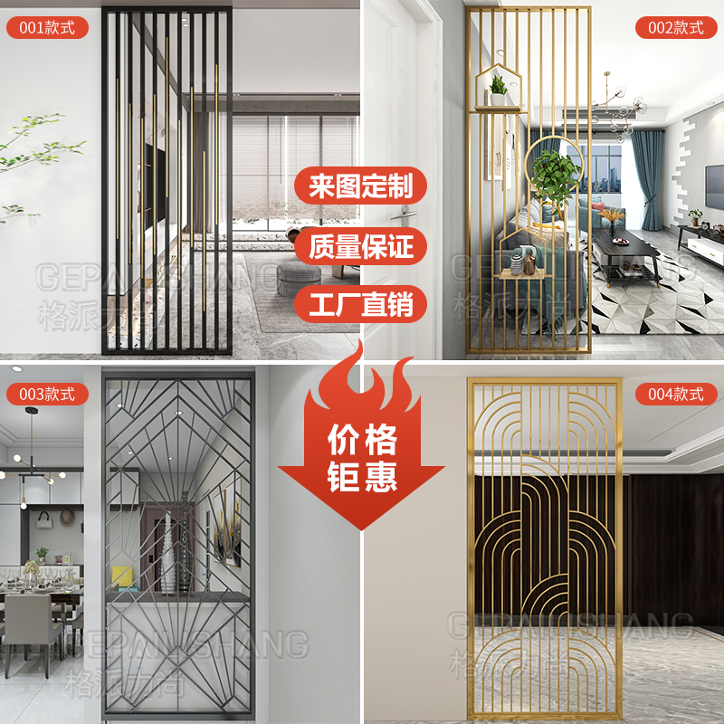 Stainless steel screen partition rose gold hollow carved hotel flower grid modern metal Chinese living room porch folding