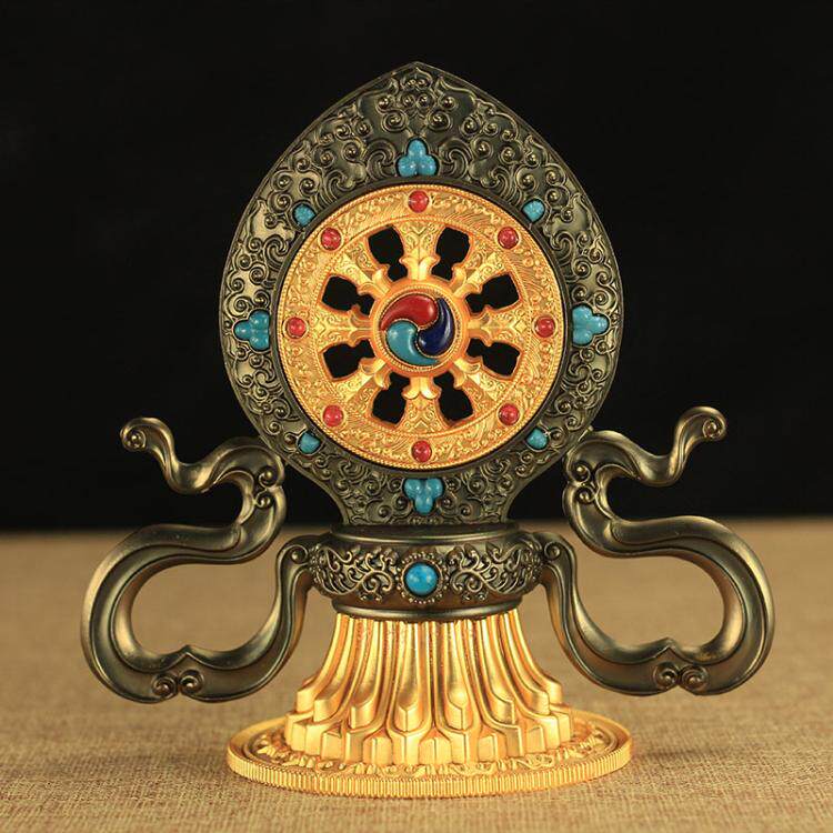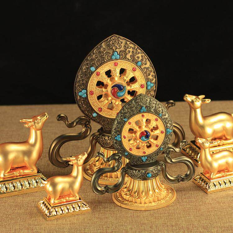 Tibetan Buddhist Myong Mega Copper Alloy Painted Gilded Gilded Double Deer Farwheel Treasure Buddha Hall for Pendulum Pieces with Small Number of Swaying Pieces