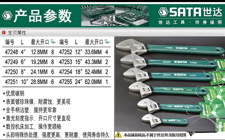 Seda tool 4 inch 6 inch 8 inch 10 inch 12 inch 15 18 inch 24 inch 24 inch with plastic-shaped Euro style active wrench