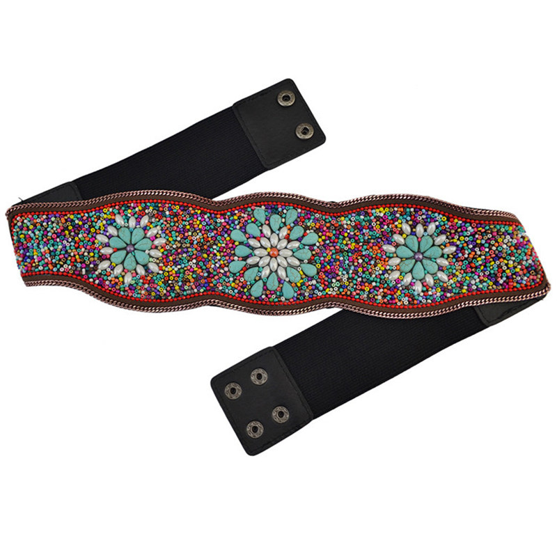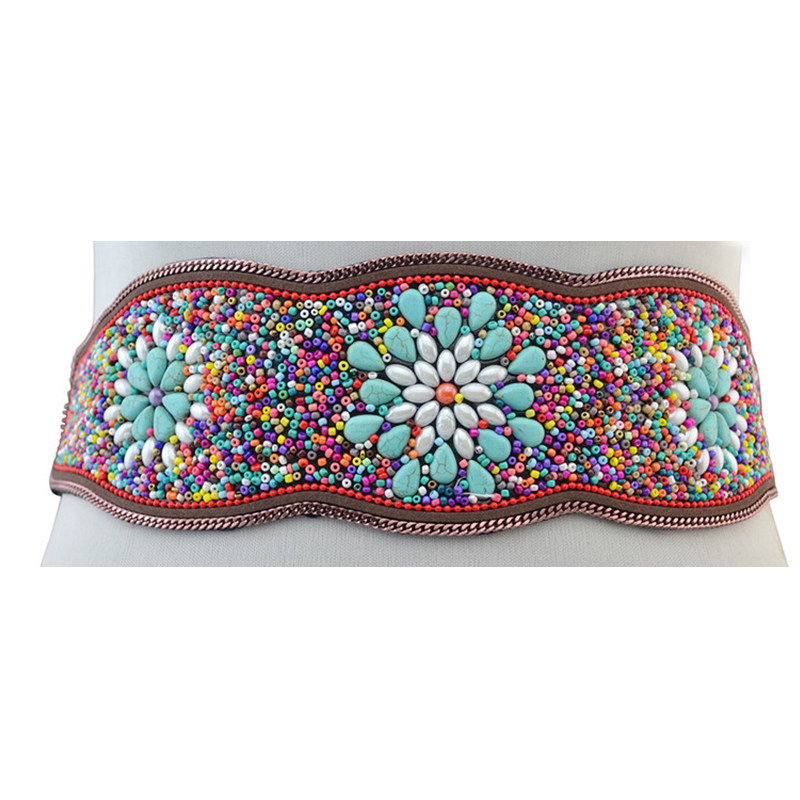 Gypsy bohemian ethnic style vintage elasticated waist chain handmade waist seal turquoise wide belt clothing accessories