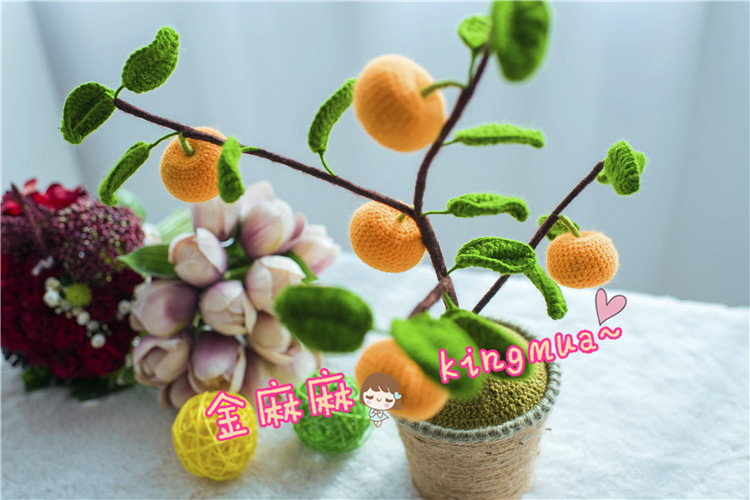(Finished product) Handmade wool diy crochet knitting cute oranges and oranges potted plants office home decoration