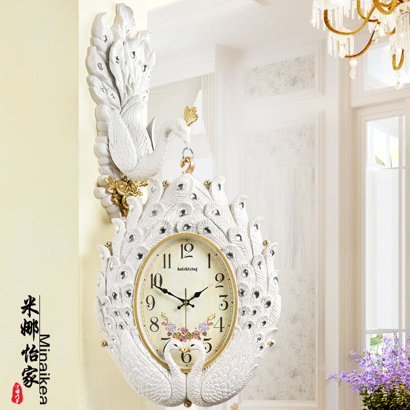 European-style home wall clock double-sided clock living room fashion clock creative personality peacock decorative art wall clock atmosphere