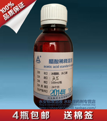 3% acetate diluted solution glacial acetic acid 100 ml First aid skin wound washed and delivered cotton stick