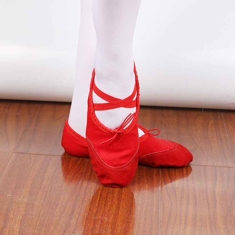 Children's dance shoes women's and men's soft-soled exercise shoes adult canvas cat paw shoes body shoes ballet shoes red