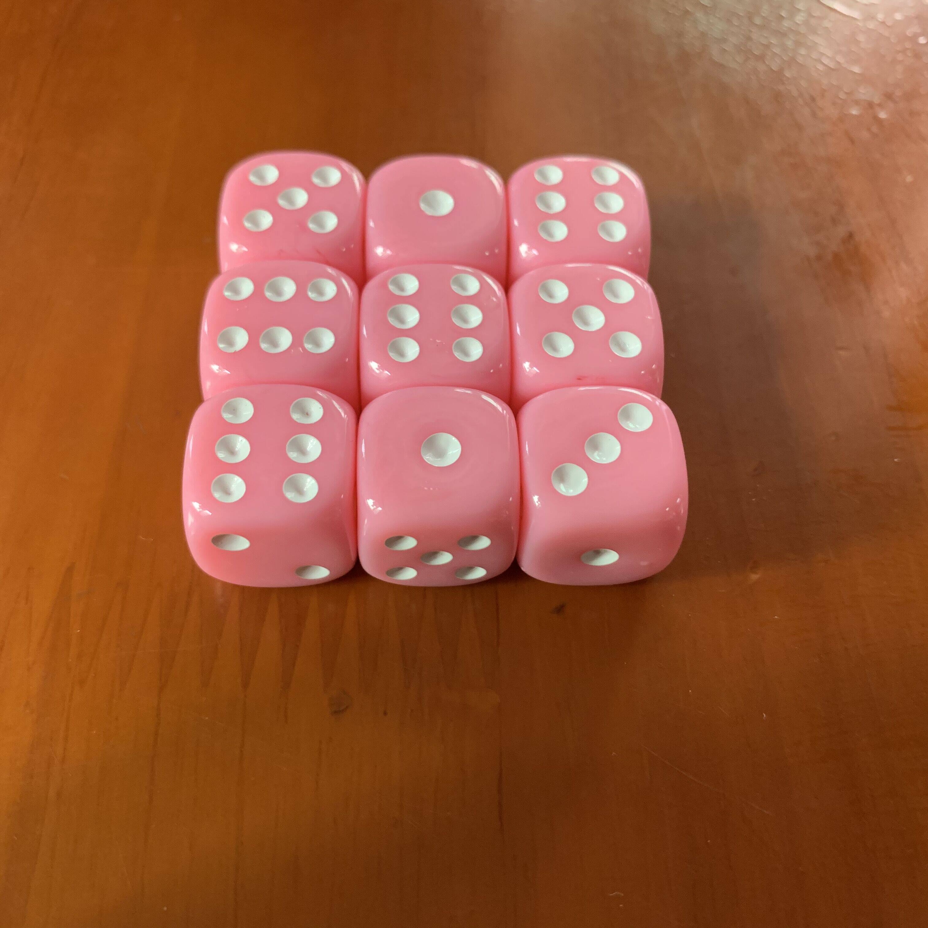 16MM ACRYLIC PINK DICE COLOR No 16 Pink dice (Charm Pink set 9 PIECES)