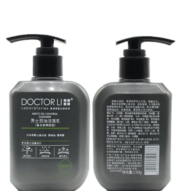 Dr. Li Men's oil control facial cleanser soothing and acne to blackhead cleaning live charcoal facial cleanser 150g Cool Mint