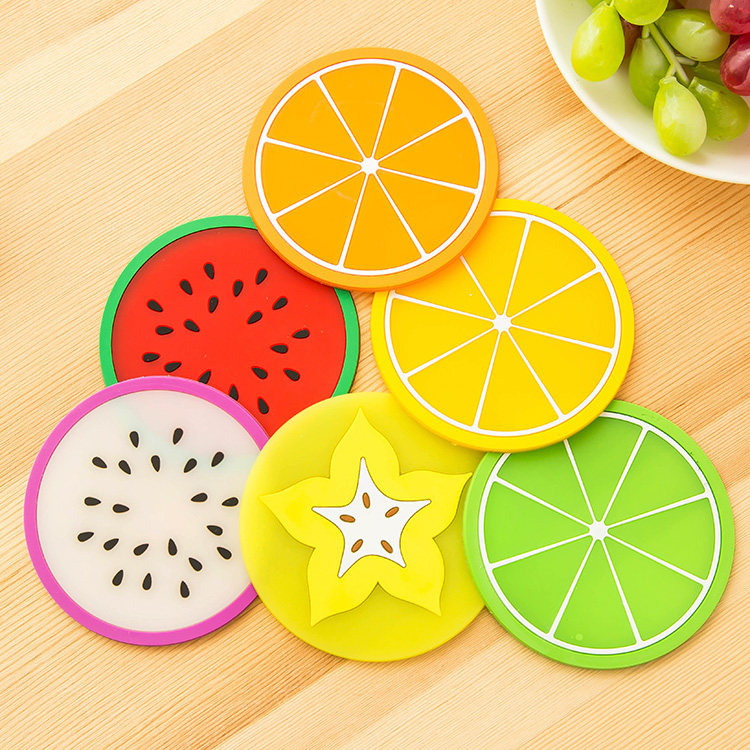 Round cartoon jelly color fruit shape coaster silicone cup mat creative non-slip heat insulation pad tea coaster bowl mat