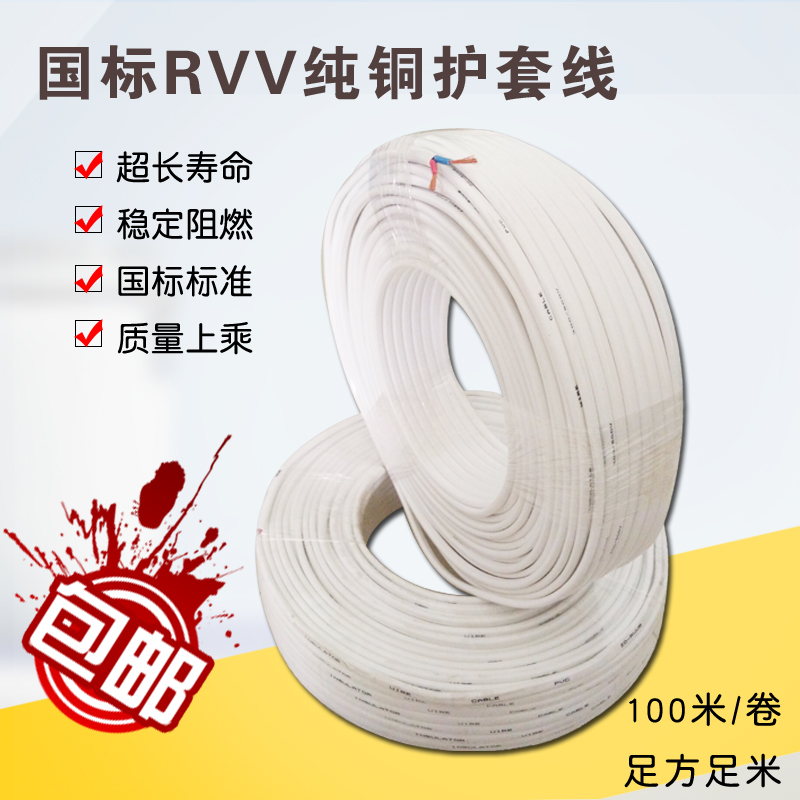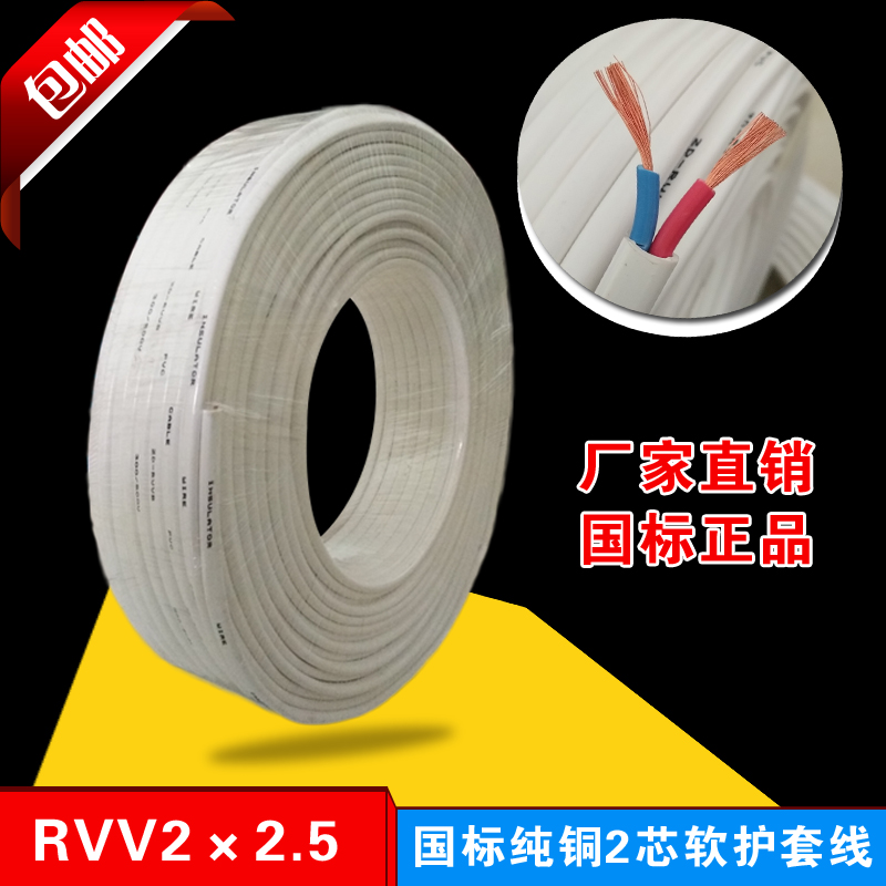 Wire 2 core 2.5 square GB 1.5 4 6 double core pure copper core wire RVV soft white sheathed wire home improvement cable